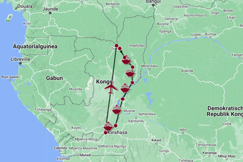 Bonobos beiwohnen. Am Nachmittag kehren Sie zum Boot zurück. Übernachtung an