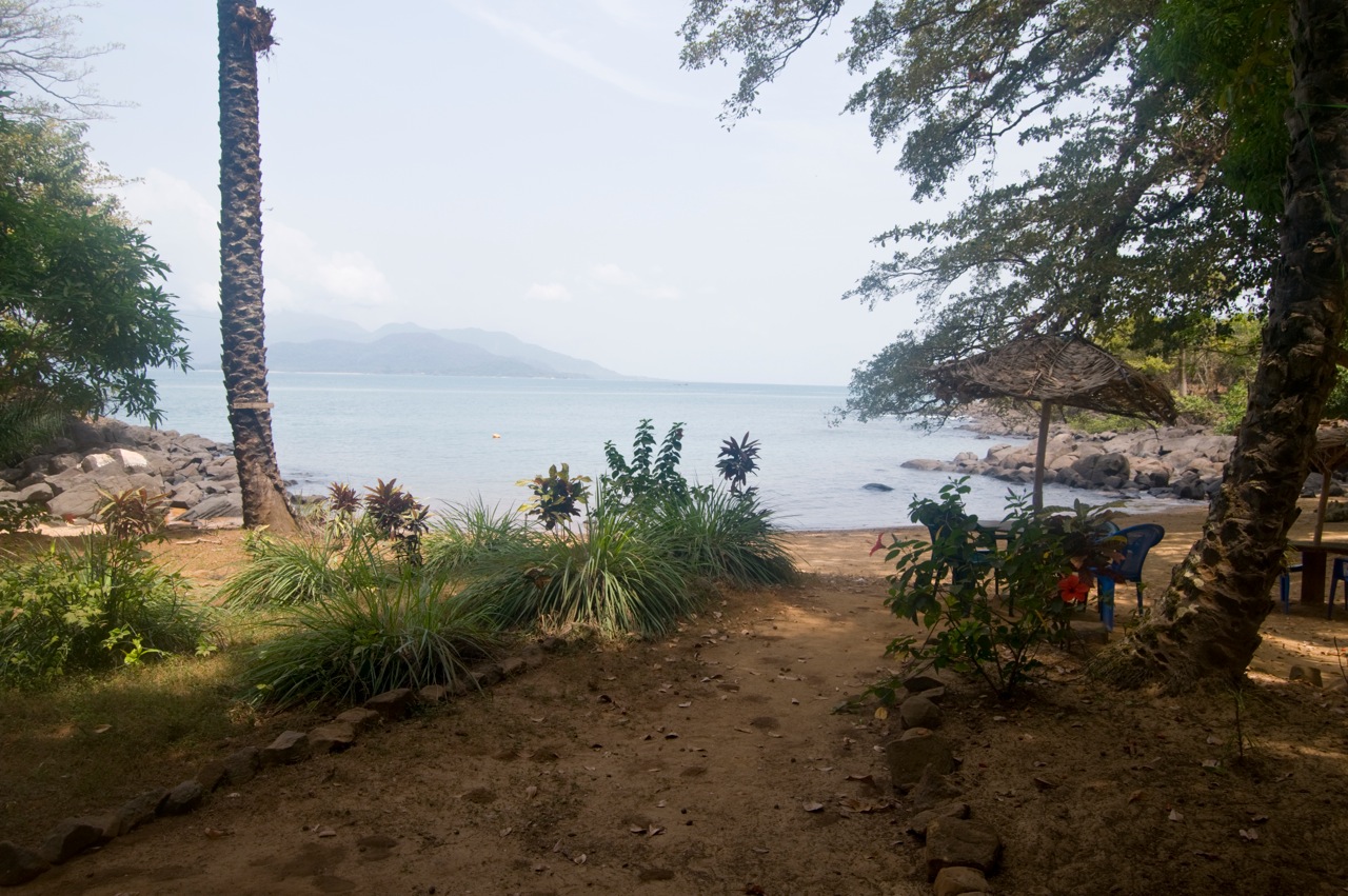 zur weiter entfernten Djangui Bai; da ist die Heimat von Papageien. Neigens in der