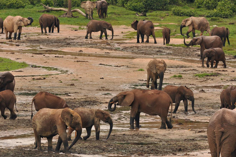 Dzanga-Bai (Bai = Lichtung) lockt mit ihren mineralhaltigen Salinen besonders